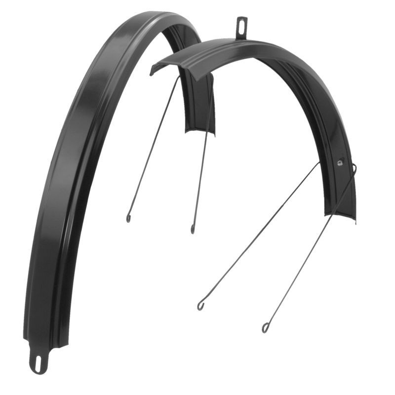 Štýlová ochrana pred blatom a vodou. Sada čiernych oceľových blatníkov určených pre mestské a detské bicykle o veľkosti 20". Vďaka Elegant profilu s vystúpenou vnútornou časťou a šírkou 56 mm sa blatníky stanú nielen praktickým, ale aj štýlovým doplnkom každého bicykla.