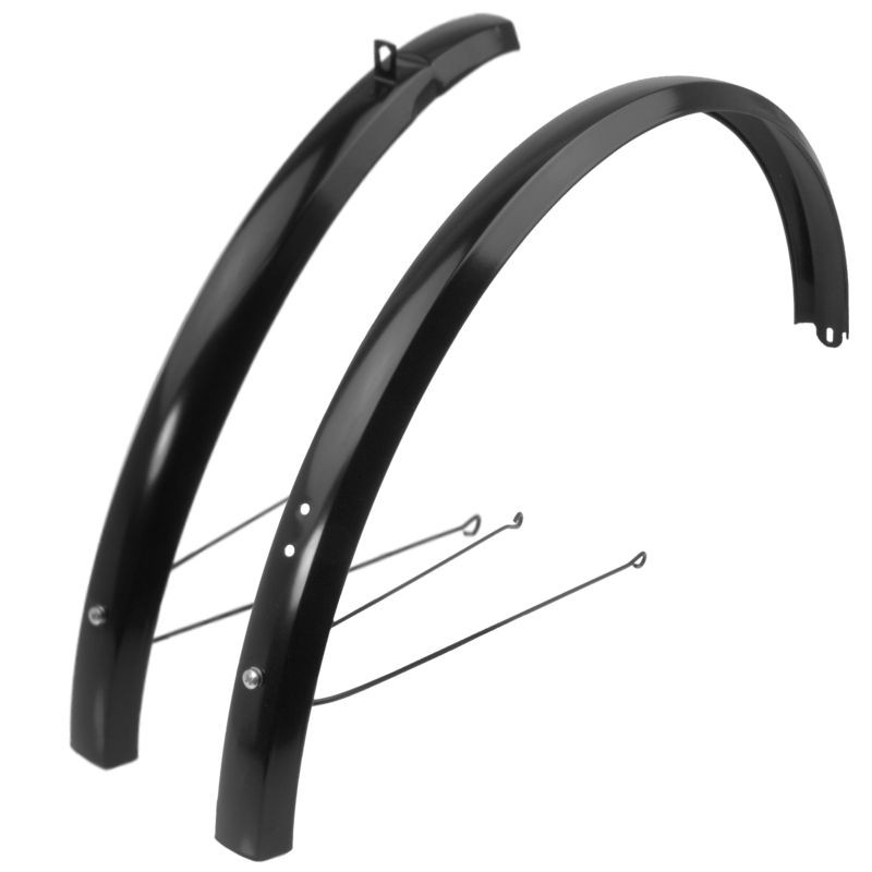 Sada čiernych oceľových blatníkov určených pre mestské a trekingové bicykle o veľkosti 28". Na rozdiel od plastových blatníkov držia svoj tvar, nepodliehajú toľko vibráciám a vyzerajú skvele a štýlovo aj po rokoch používania.