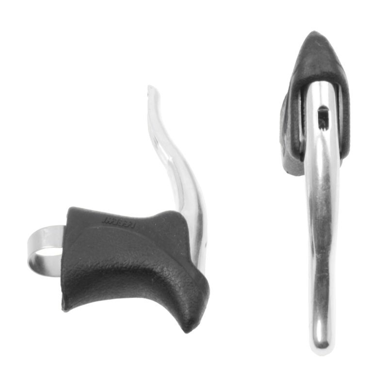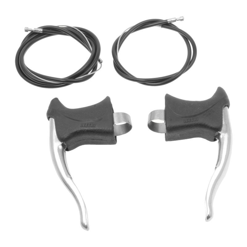 Súprava cestných hliníkových pák určených na barany (zahnuté) riadidlá cestných bicyklov. Súprava ľavej a pravej brzdovej páčky obsahuje aj 2 bowdeny s oceľovými lankami pre prednú a zadnú brzdu.