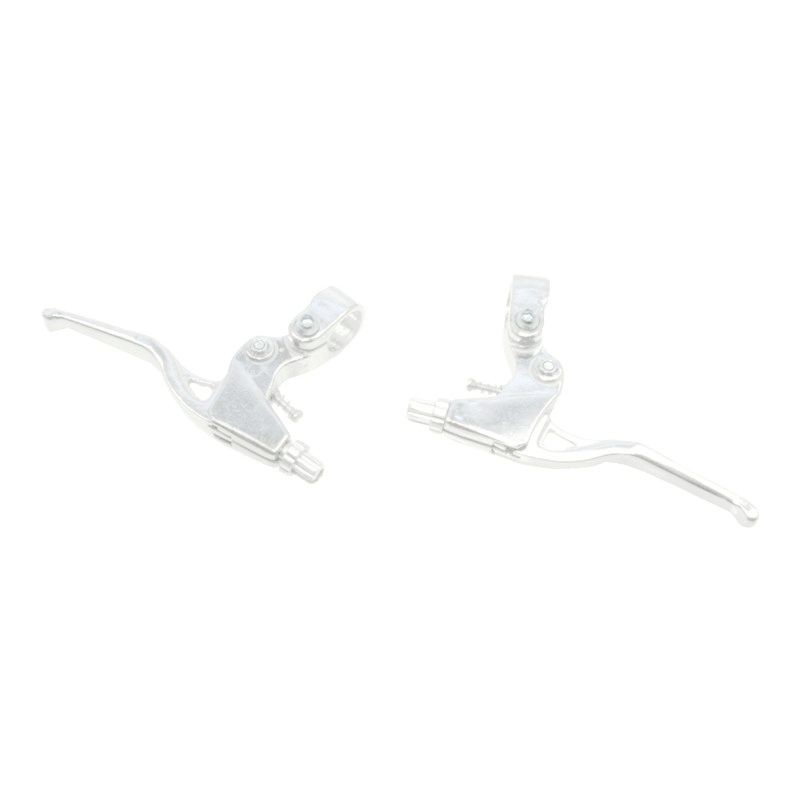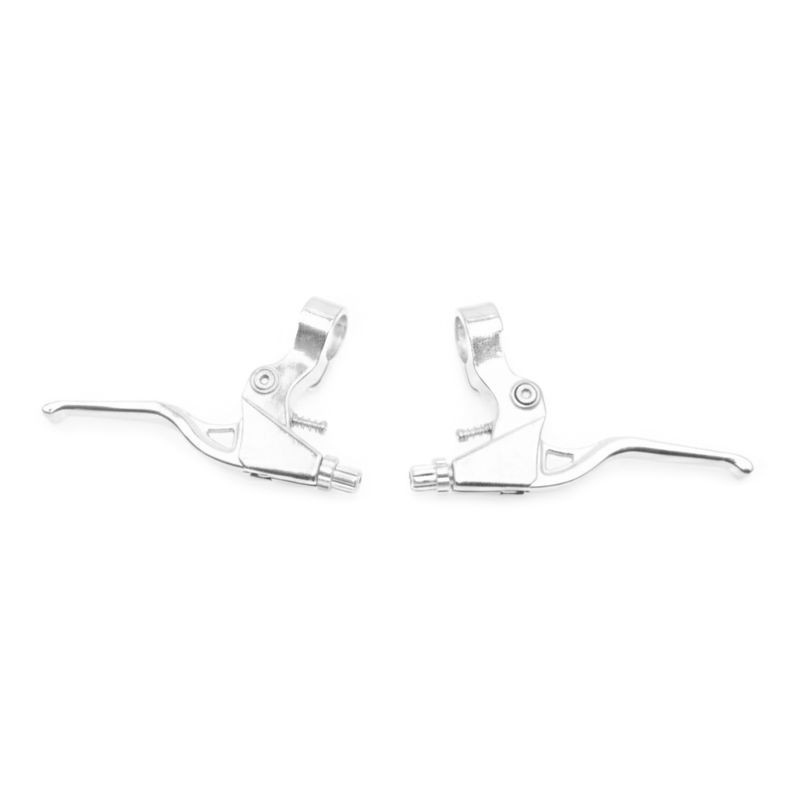 Sada pravej a ľavej brzdovej páčky, určených pre čeľusťové a "V" ráfikové cestovné brzdy. Elegantné prevedenie z lesklého strieborného hliníka.