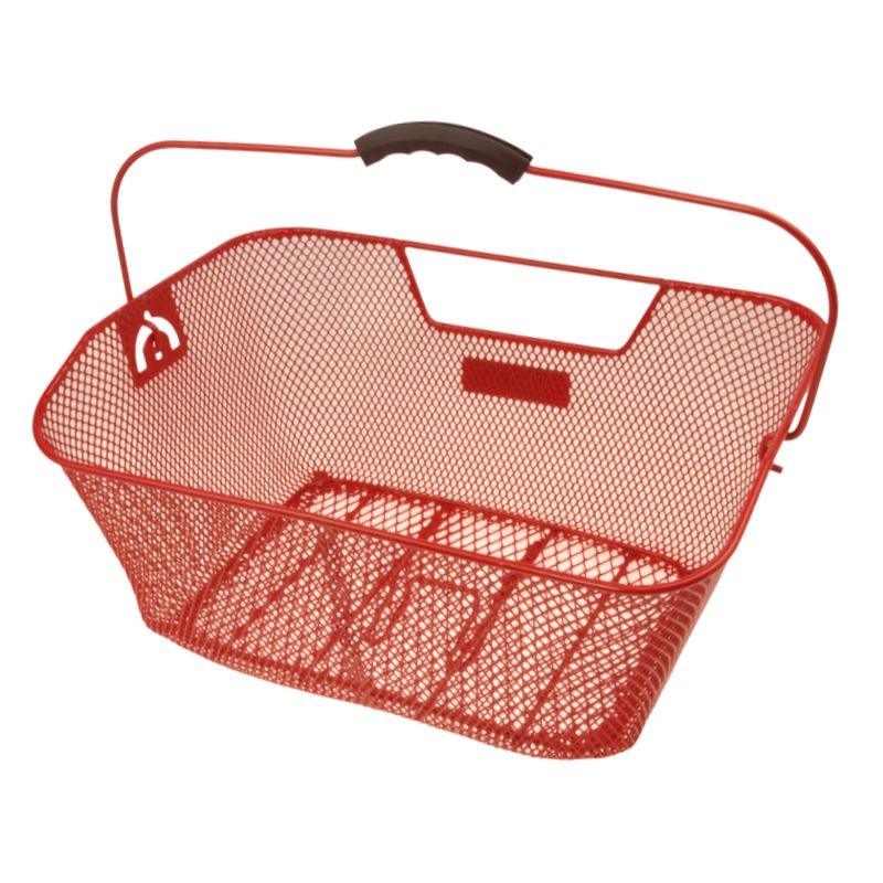 Nepostrádateľný prvok každého retro mestského bicykla - praktický červený drôtený košík na zadný nosič. Štýlový pomocník na uloženie vášho nákupu či ľahšieho nákladu.