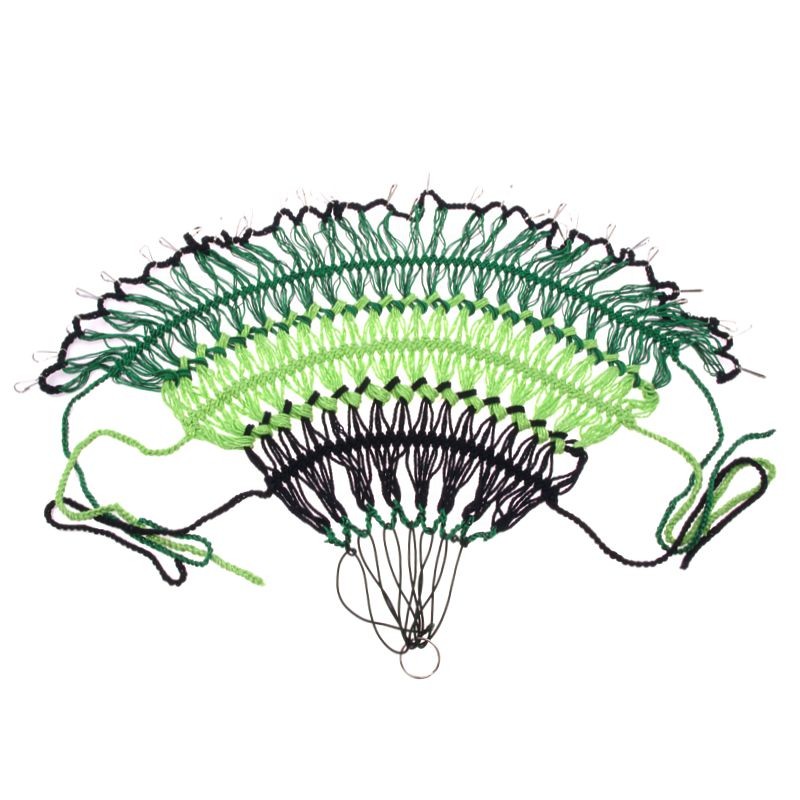 kryt zadného kolesa, sieťka pletená, čierno-zelená, s karabínami