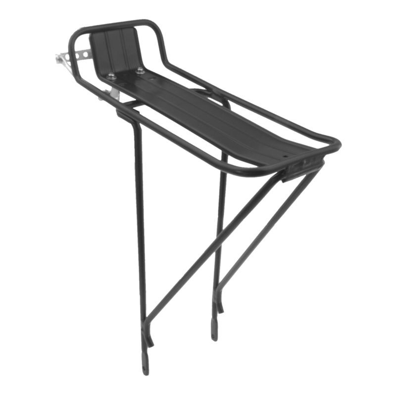 Univerzálny zadný hliníkový nosič čiernej farby, určený pre mestské a trekingové 26" bicykle. Praktický nákladný nosič je vhodný napr. pre upevnenie košíka alebo tašky.