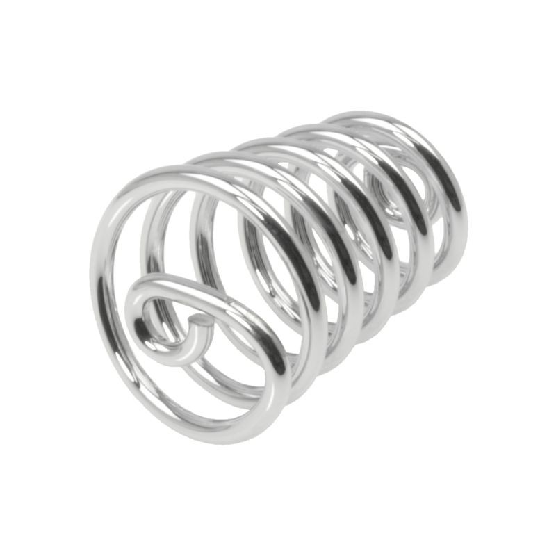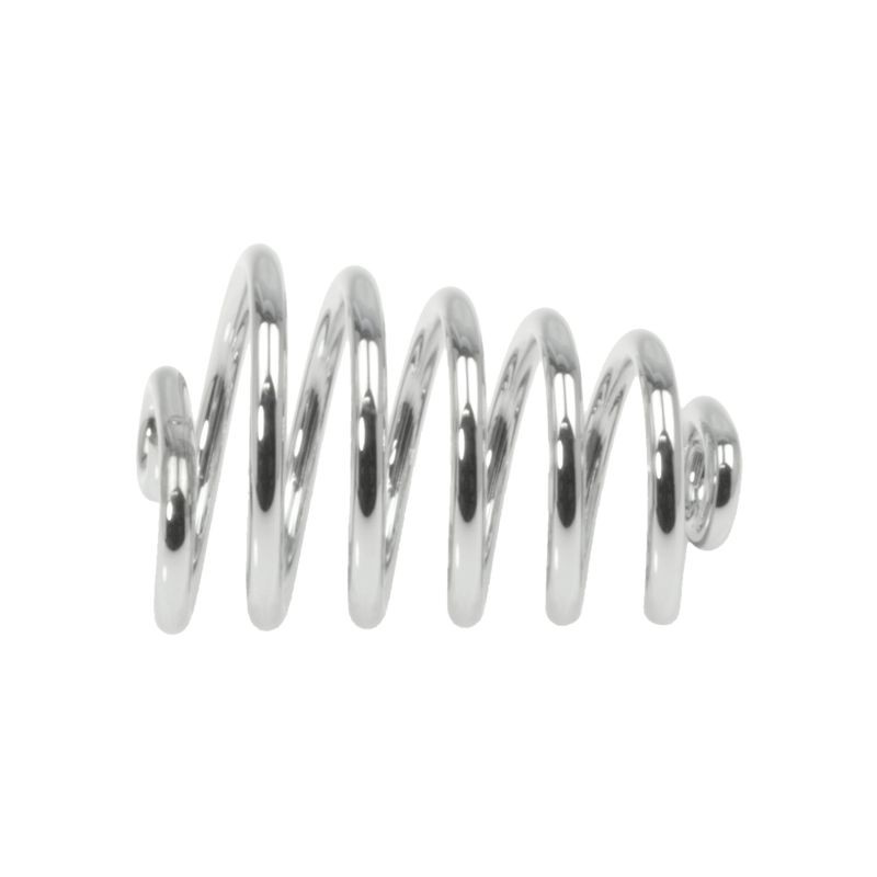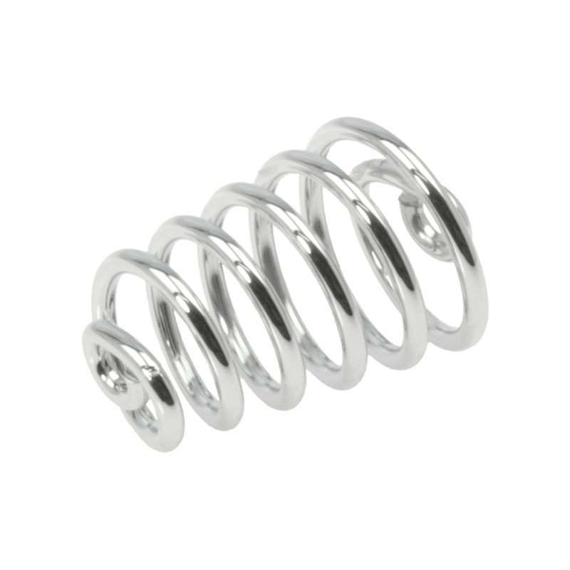 Univerzálna pevná pružina lesklej striebornej farby, vhodná napr. pre kožené sedlá na bicykli. Dĺžka pružiny 70 mm, priemer v najširšom mieste 50 mm.