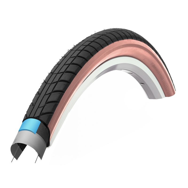 Dvojfarebná 28" pneumatika s hnedým bokom a reflexnou linkou. Plášť vybavený zosilnenou ochranou proti prepichnutiu je určený pre mestské a trekingové bicykle.