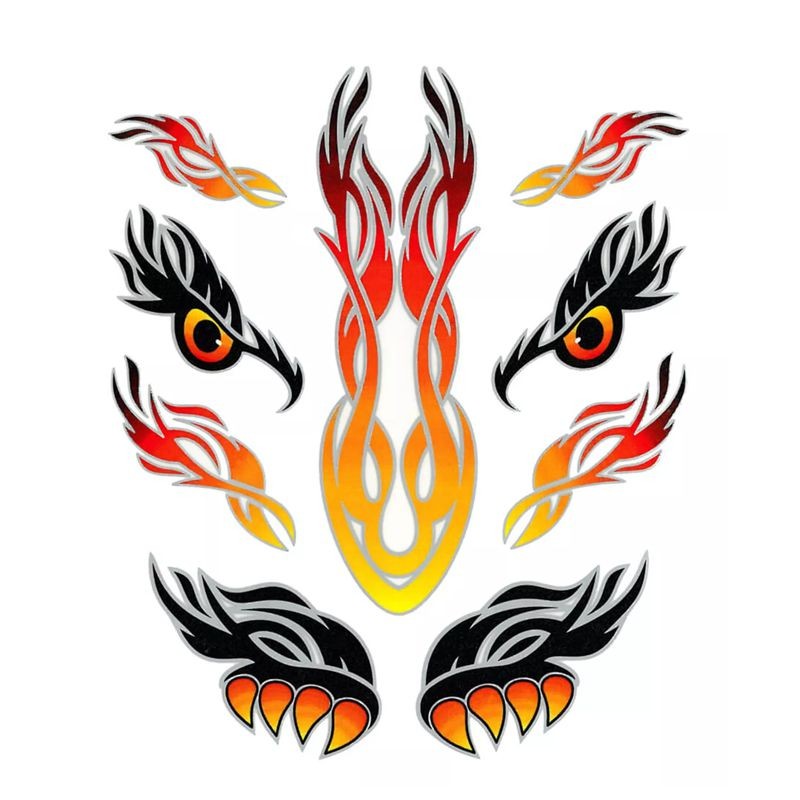 Samolepka - rámový polep s motívom farebných ornamentov - plameňov a pazúrov.