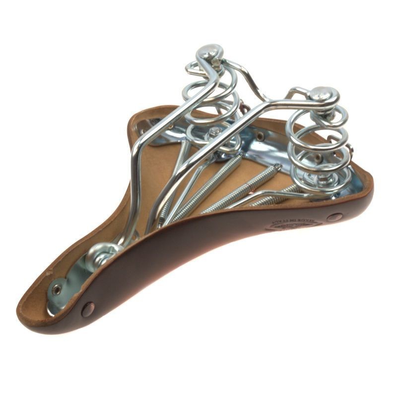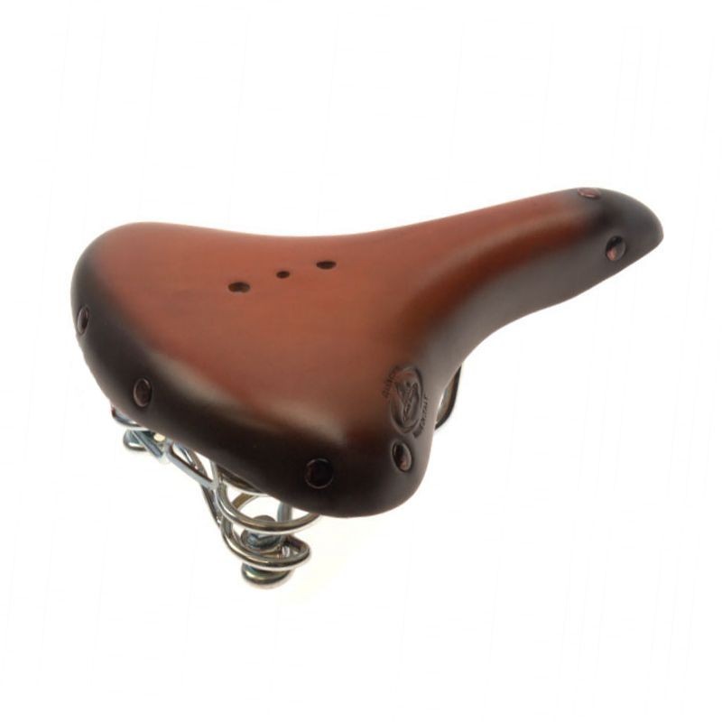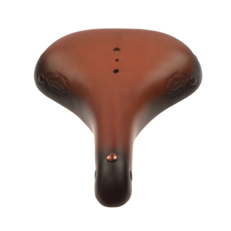 Kožené sedlo vyrobené z hovädzej kože. V exkluzívnej edícii Charleston nie je sedacia plocha jednoliato farebná, ale je s prelivom rôznych odtieňov hnedej farby.
