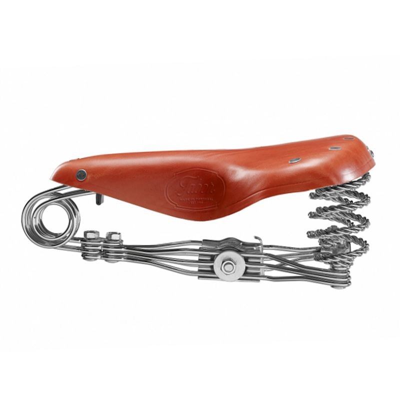 Veľké pružinové sedlo hnedej farby vyrobené z ocele a kože zaujme svojim nezameniteľným historickým vzhľadom. Ide o ručne vyrábané sedlo tradičného portugalského výrobcu Tabor.