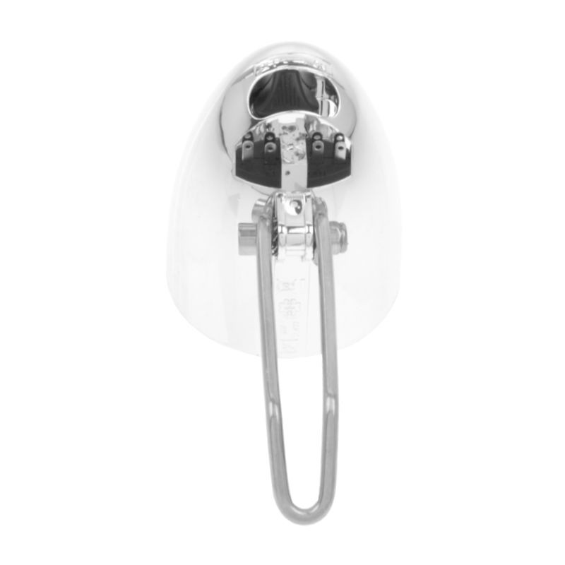 Predné retro svetlo na bicykel s lesklým chrómovaným povrchom. Svetlo s vypínačom, určené pre napájanie dynamom.