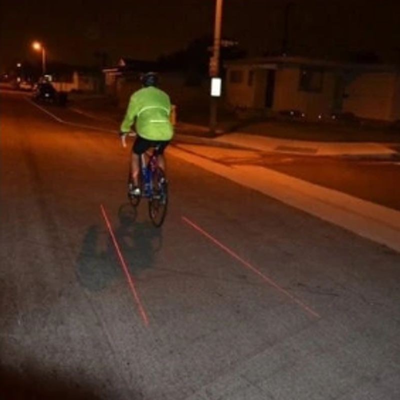 Zadná blikačka Falcon Yey s 5 super LED diódami a laserovým ukazovateľom na vysvietenie vymedzovacieho pruhu (bezpečnostnej zóny) pre cyklistu.
