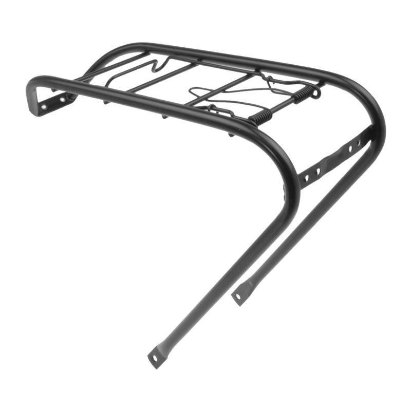 Univerzálny zadný nosič na prevoz nákladu alebo na upevnenie drôteného košíka. Pevná oceľová konštrukcia zaručuje vysokú nosnosť a odolnosť. Nosič je vhodný svojou geometriou napr. pre skladacie bicykle Eska.
