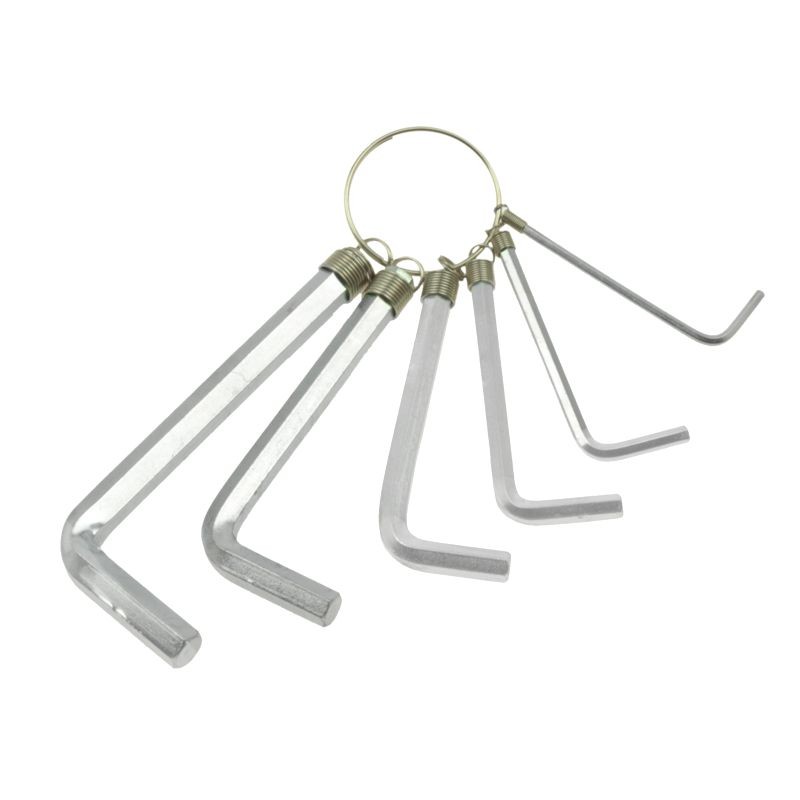 Univerzálna sada 6 ks imbusových kľúčov. Kľúče na pružinovej objímke sú navlečené na oceľovom krúžku.